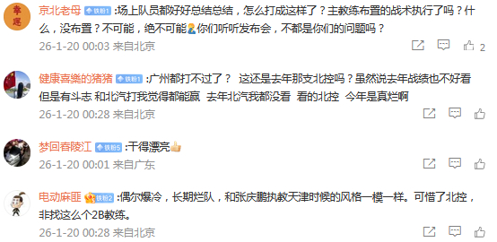 CBA常规赛第16轮,北控客场以75-104不敌广州。首节比赛被对手得了30分,在场球员没有一次犯规,三节比赛就结束比赛悬念,末节战意全无,全队只得到13分,最终惨负29分引发球迷的热议。赛后,北控官方社媒发文:北控男篮在广东之旅的最后一站中对阵广州朗肽海本,最终75:104球队惨负对手。...